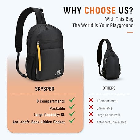 Thương hiệu SKYSPER là cái tên nổi tiếng được rất nhiều khách hàng trên thế giới chọn lựa. Với kiểu dáng đẹp mắt, sang trọng, sản phẩm SKYSPER One Strap Backpack Sling Crossbody Bag - Lightweight Chest Shoulder Cross Body Bag Travel Hiking Casual Daypack for Women Men là sự lựa chọn hoàn hảo nếu bạn đang tìm mua một món cho riêng mình.
