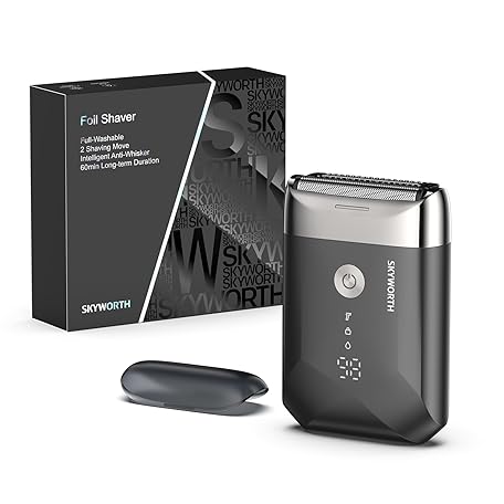 Skyworth Foil Shavers for Men,Mini Electric Face Shaver,Compact Dual-Action Razor IPX6 Waterproof with Led Display Wet/Dry Cordless Razor,60 Minute Runtime,USB C Fast Charge for Travel & Home,Black