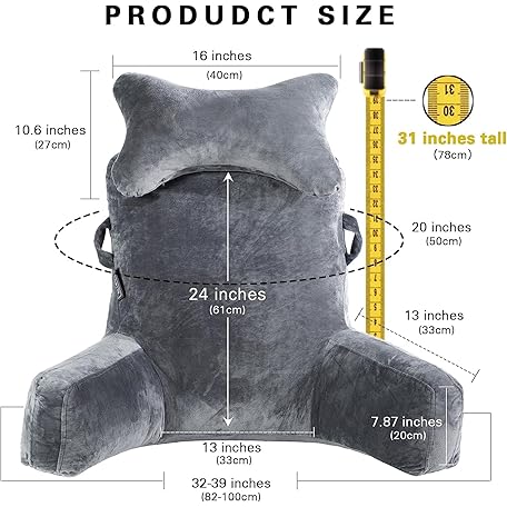 Thông tin sản phẩm SLIGUY Reading Pillow, Extra Large 78.7 cm, Bed Rest Pillow with Removable Neck Roll and Arms for Sitting in Bed or On the Couch, Backrest for Adults, for Reading, TV, Dark Grey