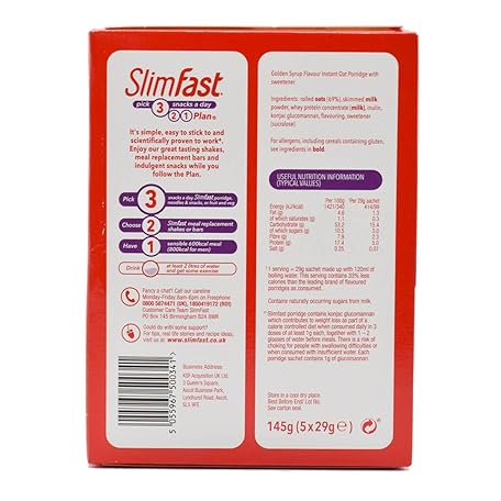 Thương hiệu SlimFast là cái tên nổi tiếng được rất nhiều khách hàng trên thế giới chọn lựa. Với kiểu dáng đẹp mắt, sang trọng, sản phẩm Slimfast Porridge Golden Syrup Flavour, 145g là sự lựa chọn hoàn hảo nếu bạn đang tìm mua một món cho riêng mình.