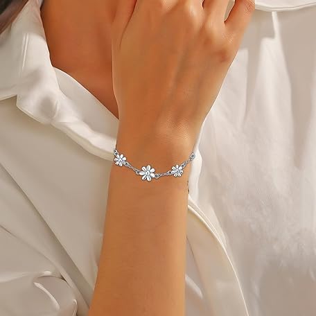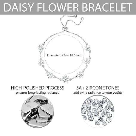 Sản phẩm Sliver Bracelets for Women, Dainty Flower Bracelet Adjustable Cute Daisy Charm Adjustable Sparkly Rhinestone Chain Bracelet Trendy Jewelry Gift for Birthday Anniversary Christmas đang được bán với giá ưu đãi là $25.7894 tại nước Anh.