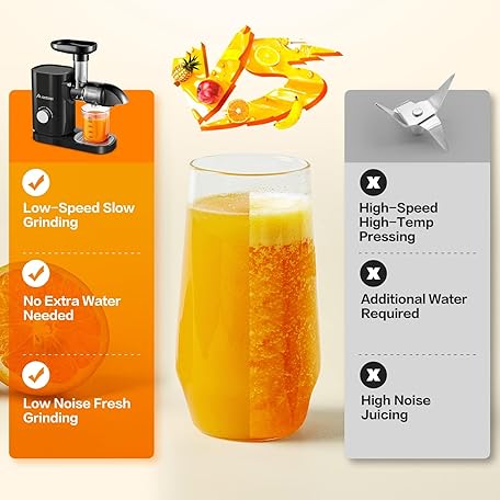 Thông tin sản phẩm Slow Masticating Juicer, AAOBOSI Juicer Machines with Quiet Motor/Reverse Function/Easy to Clean Brush, Cold Press Juicers - Fruit and Vegetable for Delicate Crushing without Filtering, Black