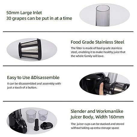 Thông tin sản phẩm Slow Masticating Juicer Extractor, 800W Compact Cold Press Juicer, Reverse Function, 50mm Large Feeding Tube, for Fresh Fruits and Vegetables Juice