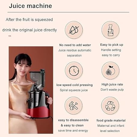 Thông tin sản phẩm Slow Masticating Juicer Machine 150W, Automatic Cold Press Juicer for Whole Fruit & Smoothies, 1000ml Capacity, Easy to Clean, Reverse Function