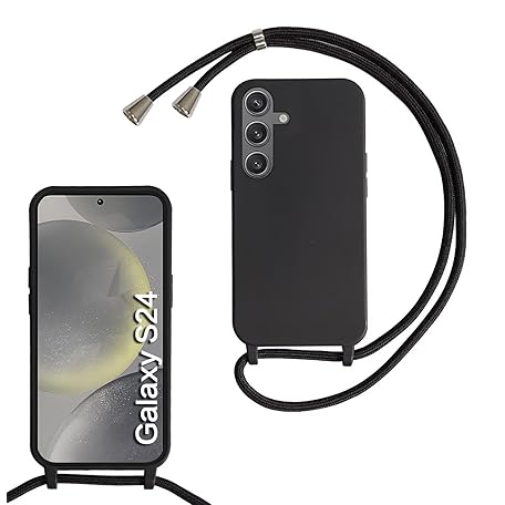 SLWYF Compatible with Samsung Galaxy S24 Crossbody Lanyard Case, Liquid Silicone Protective Phone Case with Strap Adjustable Neck Cord Necklace Soft Cover for Samsung Galaxy S24, Black