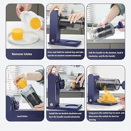 Thông tin sản phẩm Small Ice Crusher, Rechargeable Silent Ice Chopper with Icicle Molds, Snowflake Ice Shaver Maker with Screw Elevator, Fruit Ice Cream Machine for Ice Cream, Cold Drinks, Fruit Dessert