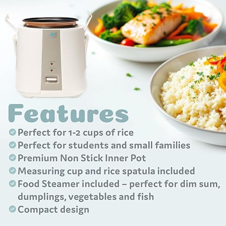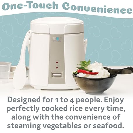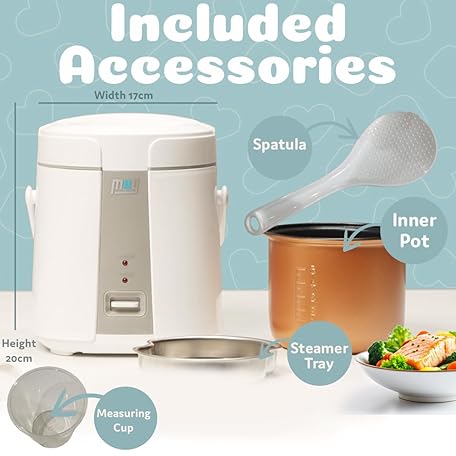 Thông tin sản phẩm Small M4Y Rice Cooker and Steamer 0.4 Litre for 1-4 People - With Steamer Attachment, Keep Warm Function, Premium Inner Pot, Spatula & Measuring Cup, Perfect Rice Every time