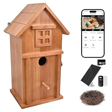 Smart Bird House with Camera Solar Powered, 1080P HD Live View Birdhouse Camera with Nest Auto Capture Photo & Video, 2.4G WiFi & App Notify, for Viewing Bird Nesting and Hatching