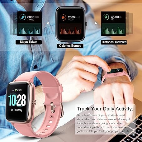 Smart Watch for Android/Samsung/iPhone, Activity Fitness Tracker with IP68 Waterproof for Men Women & Kids, Smartwatch with 1.3" Full-Touch Color Screen, Heart Rate & Sleep Monitor, Pink