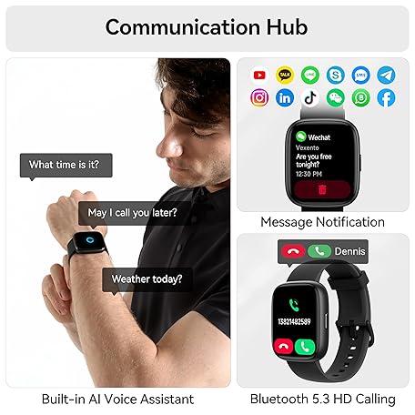 Smart Watch with Alexa Built-in, 1.83" HD Fitness Watch with Bluetooth Calling, New Smartwatch with Heart Rate/Sleep Monitor/Stress, 110+ Sports Modes, IP68 Waterproof Activity Tracker for Android iOS