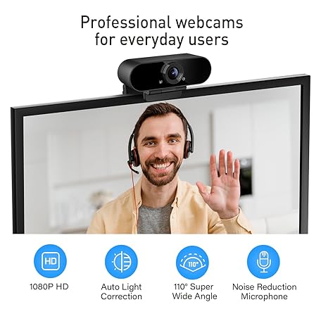 Thông tin sản phẩm Smilodon 1080P HD Webcam, Pro, with 110° Wide Angle, Privacy Cover, Microphone, Tripod, for Conferencing, Live Streaming, Recording, Compatible with Skype/Zoom/YouTube/Teams