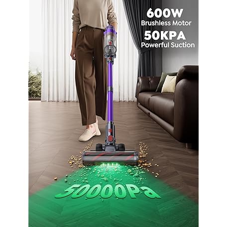 Thông tin sản phẩm SMOTURE Cordless Vacuum Cleaner, 600W 50KPA Stick Vacuum with Touch Screen, Up to 65 Mins Runtime, Self-Standing Vacuum with Auto Mode, Lightweight Vacuums for Hardwood Floor Carpet Car Pet Hair
