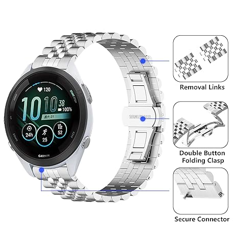 • SMYAOSI Strap for Garmin Forerunner 265S/255S, 18mm Stainless Steel Metal Replacement Watch Strap for Garmin Venu 2S/Vivomove 3S/Move 3S/Vivoactive 4S