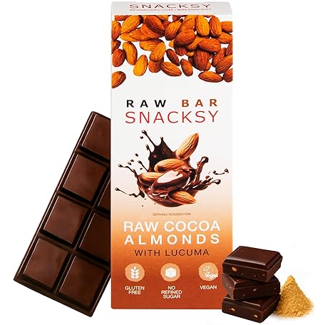 Snacksy Vegan Chocolate - Raw Almonds with Lucuma Bar (1 x 40g Box) | Gluten Free, Dairy Free, Refined Sugar Free & Kosher Cacao Snack with Superfoods & Fibre | Luxury Boxed Choccy Treat or Gift