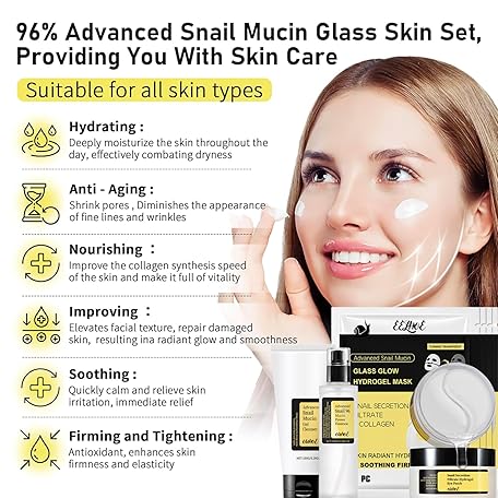 Sản phẩm Snail 96 Mucin Power Essence Skin Care Set, 7PCS Korean Skincare Set With Gel Cleanser, Snail Mucin Serum, Hydrogel Eye Patches, Glass Skin Collagen Mask, Deep Hydration, Skin Repair & Radiant đang được bán với giá ưu đãi là $29.2665 tại nước Anh.