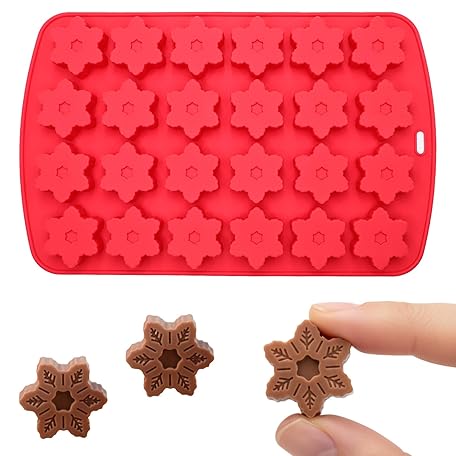 Snowflake Silicone Molds Christmas Cake Mold for Baking 24 Cavities Snowflake Baking Molds Christmas Baking Party Supplies Xmas Mold for Making Chocolate, Candy, Cake, Jelly, Candle, Ice (Red)