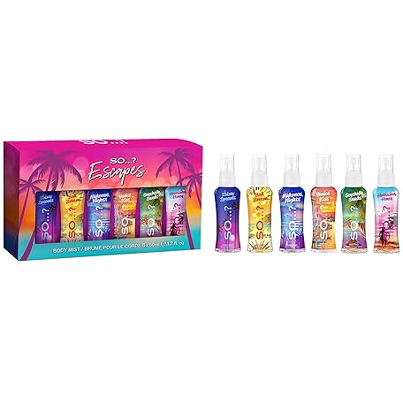 So...? Summer Escapes Mini Body Mist for Women, Fragrance Gift Set (6 x 50ml) – Ibiza Dreams, Bali Breeze, Mykonos Nights, Venice Kiss, Seychelle Sands & Hawaiian Honey – Cruelty-Free