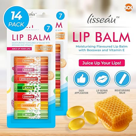 Sản phẩm SOL 14pk Lip Balm Set Flavoured Moisturiser for Lips with Beeswax & Vitamin E - Lip Care Gift Set Fruity Flavours for Dry Chapped Lips - Moisturising Balms Multipack Sticks Girls Lipbalm for Daily Use đang được bán với giá ưu đãi là $14.5188 tại nước Anh.