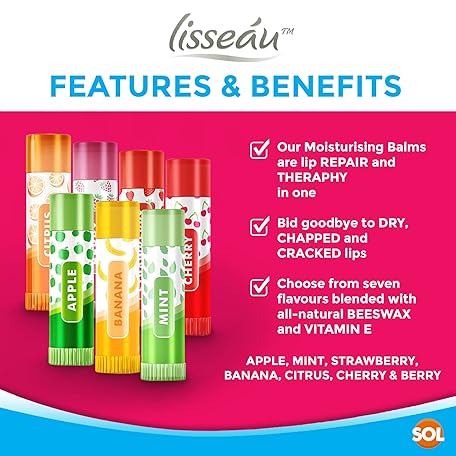 Sản phẩm SOL 7pk Lip Balm Set Flavoured Moisturiser for Lips with Beeswax & Vitamin E - Fruit Lip Balm Set for Girls for Dry Chapped Lips - Moisturising Balms Multipack Sticks Girls Lipbalm for Daily Use đang được bán với giá ưu đãi là $5.1012 tại nước Anh.