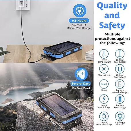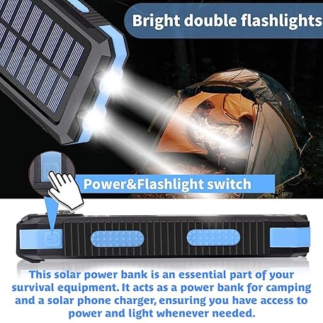 Thông tin sản phẩm Solar Power Bank 20000mAh, Portable Fast Charging Charger with Torch and Compass, Waterproof Backup Battery for Outdoor Use and Travel, Charge In Sunlight or with the Supplied Cable Before Use