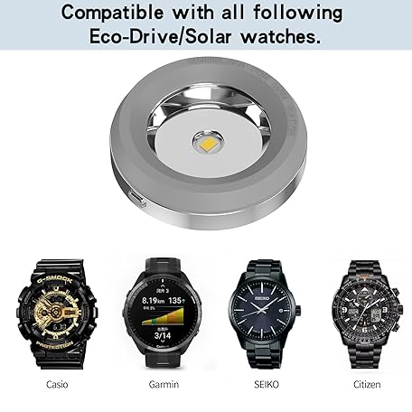 Sản phẩm Solar Watch Fast Charger-Watch Solar Charger Metal Base, Fast Heat Dissipation, Solar Power Portable Charger, Suitable for Casio/Citizen/Seiko/Garmin Solar Watch (Silvery) đang được bán với giá ưu đãi là $29.2665 tại nước Anh.
