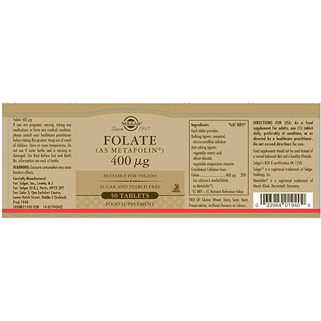 Sản phẩm Solgar Folate (as Metafolin®) 400 µg Tablets - Food Supplement - Pack of 50 - Supports Blood Formation - Helps Reduce Tiredness and Fatigue - Wellbeing for Men and Women - Vegan đang được bán với giá ưu đãi là $12.535 tại nước Anh.