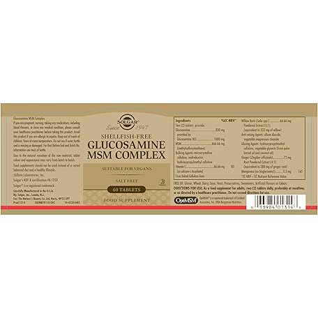 Thông tin sản phẩm Solgar Glucosamine MSM Complex Tablets - Bone, Joint, and Cartilage Care - Shellfish Free - Gluten Free, Pack of 1 , 60 Tablets
