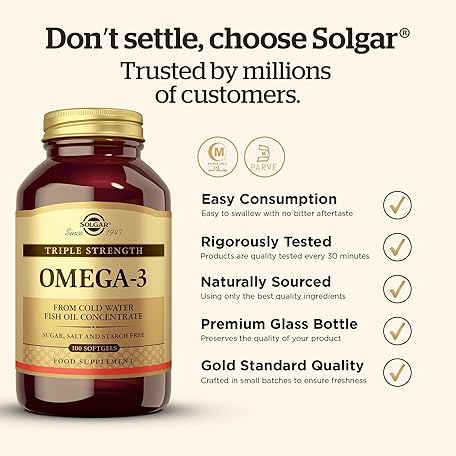 Sản phẩm Solgar Triple Strength Omega 3, Supports Brain and Eyes, Heart Health Friendly, Fish Oil, Brown, 100 Count (Pack of 1) đang được bán với giá ưu đãi là $51.121 tại nước Anh.