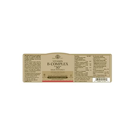Thông tin sản phẩm Solgar Vitamin B-Complex ''50'' Vegetable Capsules - Pack of 50 - High Potency Daily Capsule - Supports Mental Performance, Reduces Fatigue - For Busy and Active Lifestyles - With Thiamine, Riboflavin, Folic Acid - Vegan