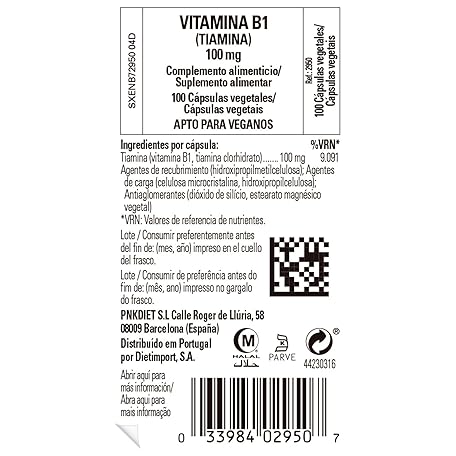 Solgar Vitamin B1 (Thiamin) 100 mg Vegetable Capsules - Pack of 100 - Supports Energy Levels and Nervous System - For a Healthy Heart and Balanced Mind - Vegan and Gluten Free