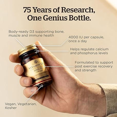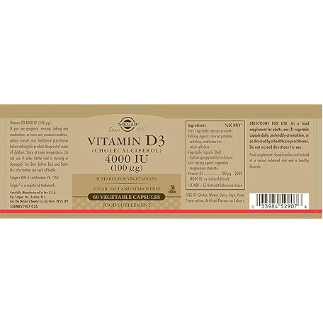 Sản phẩm Solgar Vitamin D3 4000 IU (100 µg) Vegetable Capsules - 60 Count (Pack of 1) - Cholecalciferol - Keeps Bones and Teeth Healthy - Supports Muscle Function & Immunity - Vegetarian đang được bán với giá ưu đãi là $21.5602 tại nước Anh.