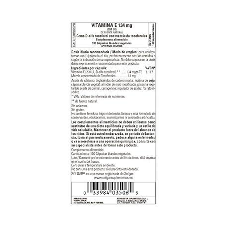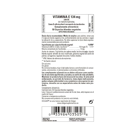 Sản phẩm Solgar Vitamin E 134mg 200 UI 50 Vegetable Softgels đang được bán với giá ưu đãi là $28.1765 tại nước Anh.