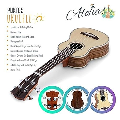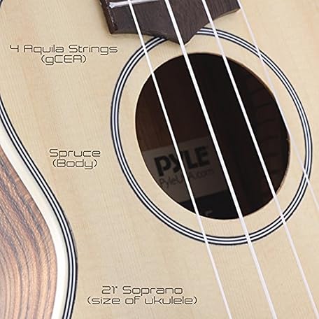 Thông tin sản phẩm Solid Wood Spruce Soprano Ukulele - High Quality Professional Instrument with Spruce Face, Mahogany Neck, Black Walnut Fingerboard & Bridge - Pyle Pro PUKT65