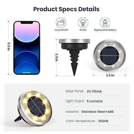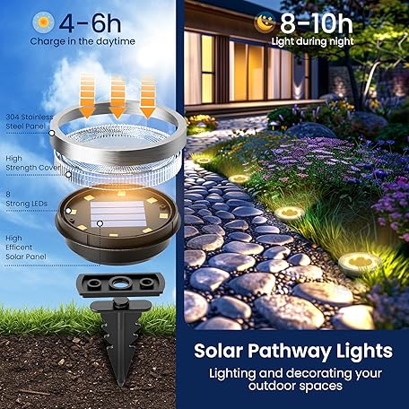 Thông tin sản phẩm SOLPEX 16 Pack Solar Ground Lights, Solar Lights Outdoor Waterproof, Solar Powered Pathway Lights, Outdoor Lights for Garden Walkway Driveway Backyard Decor (Warm White)