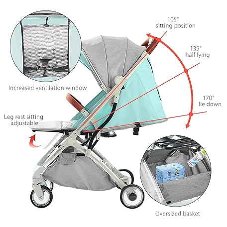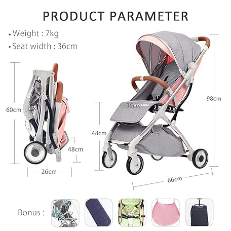 Thông tin sản phẩm SONARIN White Frame Lightweight Stroller,Compact Travel Buggy,Stylish Pushchair,One Hand Foldable,Five-Point Harness,Great for Airplane, Upgraded Wheels,with Accessories(Light Pink)