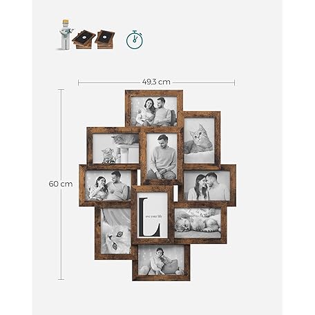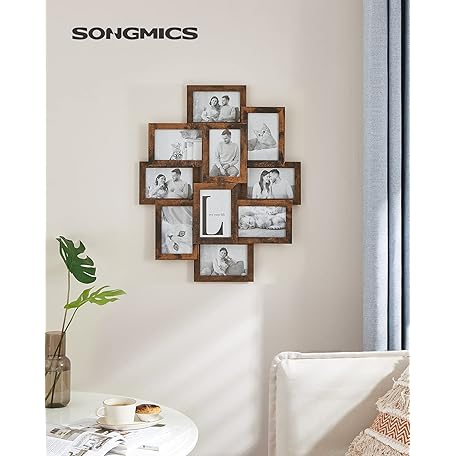 Thông tin sản phẩm SONGMICS Collage Picture Frame, 10 Frames for 4x6 Photos, Multi Wall Decor, Rustic Brown RPF020X01