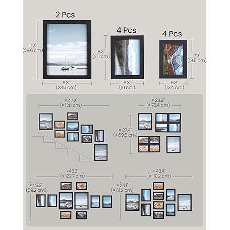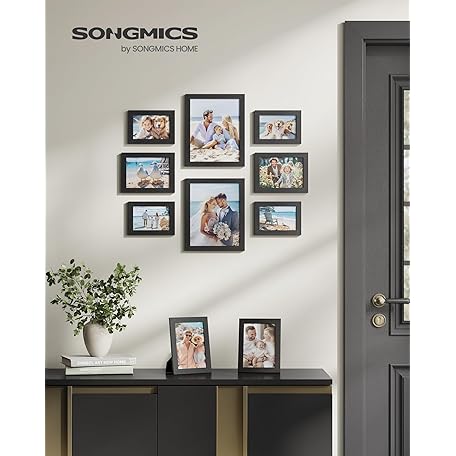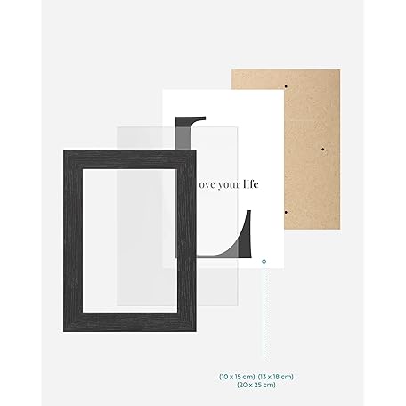 Thông tin sản phẩm SONGMICS Set of 10 Picture Frames, Two 20 x 25 cm (8 x 10 Inches), Four 13 x 18 cm (5 x 7 Inches), Four 10 x 15 cm (4 x 6 Inches), Plastic Front, MDF, Ink Black RPF310H