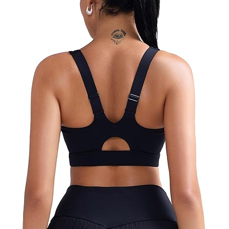 SONGSKY Sports Bras for Women High Impact,Adjustable Racerback Molded Cup Running Sports Bra with Sewn in Pads, Black, M