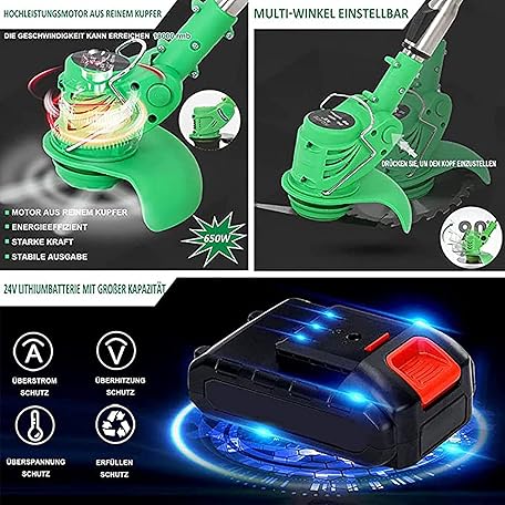 Thông tin sản phẩm SONLED Cordless Lawn Mower, 3 In 1 Multifunctional Electric Lawn Mower Telescopic Handle 24V Lawn Mower With Battery Charger For Mowing Lawn Care Driveway Garden, 2 Batteries