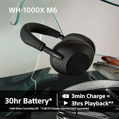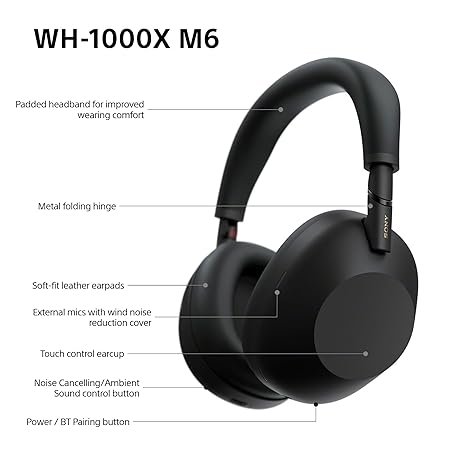 Thông tin sản phẩm Sony WH-1000XM6 Flagship Noise Cancelling Over-Ear Wireless Bluetooth Headphones, Signature Hi-Res Sound, Ultimate Comfort, Foldable Design, Durable Case, 30 HR Battery, iOS & Android - Black
