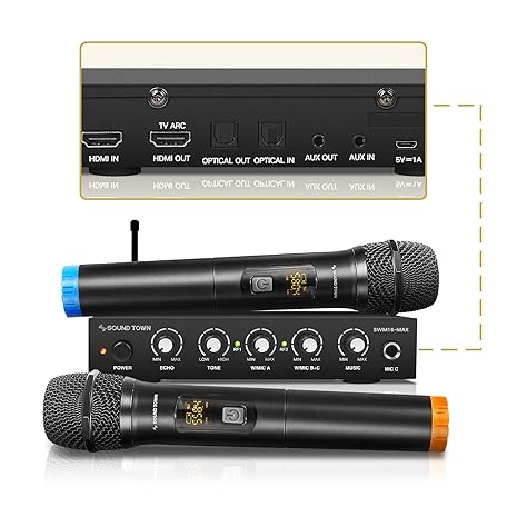 Thông tin sản phẩm Sound Town Wireless Microphone Karaoke Mixer System with HDMI ARC, Optical (Toslink), AUX, Supports Smart TV, Media Box, PC, Bluetooth, Soundbar, Receiver (SWM16-MAX)