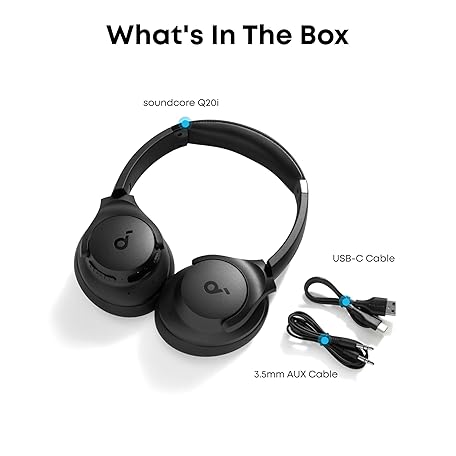 Thông tin sản phẩm soundcore by Anker Q20i Hybrid Active Noise Cancelling Foldable Headphones, Wireless Over-Ear Bluetooth, 40H Long ANC Playtime, Hi-Res Audio, Big Bass, Customize via an App, Transparency Mode (Black)