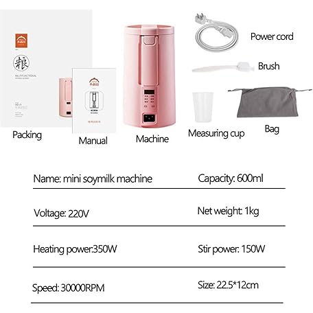伟 祥 Soy Milk Maker Automatic Soymilk Machine Maker Mini Heated SOYA-Bean Milk Juicer Blender Rice Paste Maker Household Food Mixer