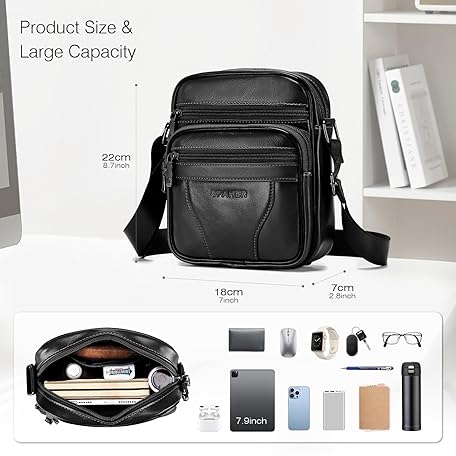 Sản phẩm SPAHER Small Mens Leather Bag Handbag Shoulder Bag Business Messenger Bag Cross Body Casual Sling Organiser Travel bag with Adjustable Detachable Shoulder Strap Black đang được bán với giá ưu đãi là $30.6944 tại nước Anh.