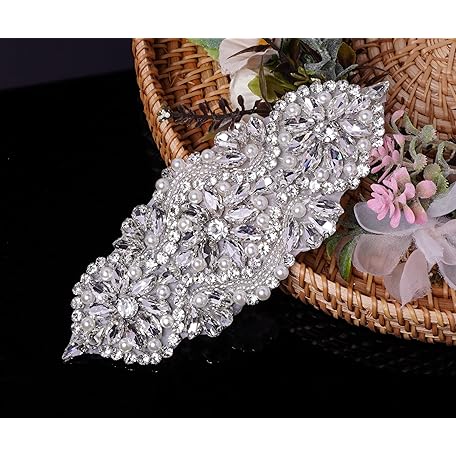 Sparkling Rhinestone Applique Heavy Beads Belt Diamante Crystal Lace Craft Sewing on Bridal Wedding Ball Dress Gown Iron on or sewon (Silver, 15 cm / 6 cm)