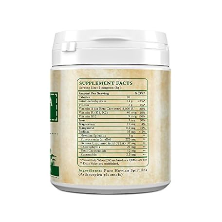 Thông tin sản phẩm Spirulina Powder 450g – High Potency Spirulina Pacifica Powder - Superfood powder, Smoothie, Super greens – Hawaiian Spirulina Pacifica Supplement Containing Over 100 Vitamins and Minerals
