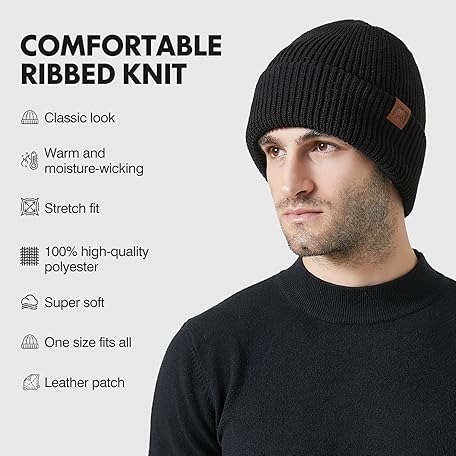 Thông tin sản phẩm sportvibe Knit Cuffed Beanie for Men and Women, Stretchy Soft Warm Daily Cuffed Unisex Winter Fisherman Hats, Gifts for Women/Men/Him/Dad