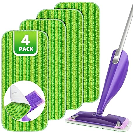 Spray Mop Refill Pads for Flash Powermop, 4PCS Microfibre Mop Pads Washable for Household Wet Dry Floor Mop, Reusable Mop Head Replacement for Hardwood Laminate Floor Cleaning