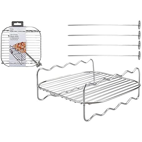 Square Air Fryer Skewer Grill Rack with 4 Metal Kebab Vegetable Skewers 17cm x 17cm x 7cm