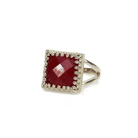 Square Jade Ring - Handmade 925 Sterling Silver Rings for Women - Semiprecious Gemstone, Birthstone Rings, Everyday Rings, Statement Jewelry - Custom Material and Size
